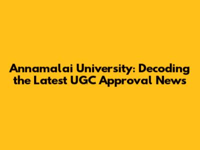 Latest News: What's the Current Status of Annamalai University's UGC Approval?