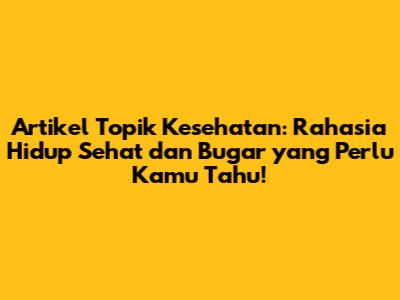 Artikel Topik Kesehatan: Panduan Lengkap Untuk Hidup Sehat & Bugar