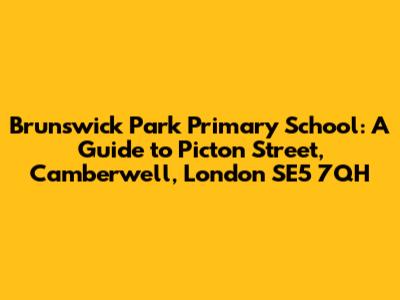 Hey guys! Ever wondered about Brunswick Park Primary School? It's a key part of the Camberwell community in London, specifically at Picton Street, postcode SE5 7QH. This article is your go-to guide, offering a deep dive into the school, covering everything from its location and facilities to its ethos and academic achievements. Whether you're a parent considering enrolling your child, a prospective teacher, or simply curious about this educational institution, we've got you covered. Let's get started on this exciting exploration of Brunswick Park Primary School!