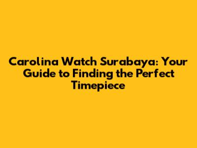 Carolina Watch Surabaya: Your Guide To Finding The Perfect Timepiece