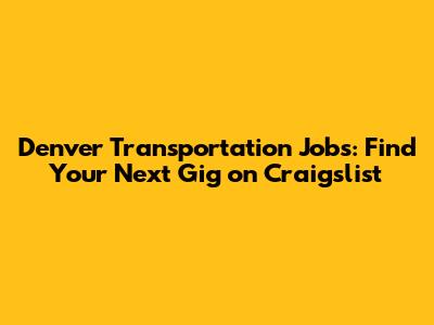 Why Craigslist Denver is Your Go-To for Transportation Gigs