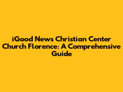 Hey guys! Ever wondered about finding a church home, especially one that truly feels like family? Let me tell you about the iGood News Christian Center Church in Florence. This isn't just any church; it's a vibrant community where faith, fellowship, and fun collide. If you're looking for a place to grow spiritually, connect with awesome people, and make a real difference, you've stumbled upon the right article! We'll dive deep into everything you need to know about iGood News Christian Center, from its core beliefs and ministries to its impact on the Florence community. Prepare to be inspired, informed, and maybe even a little bit moved. Let's get started!