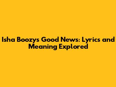 Isha Boozy's Good News: Lyrics And Meaning Explored
