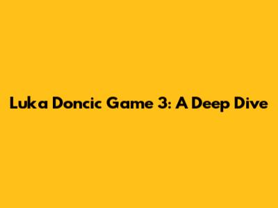Luka Doncic Game 3: A Deep Dive