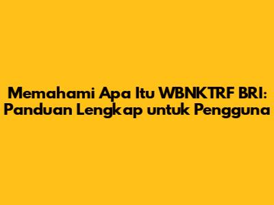 Pengertian Dasar: Apa itu WBNKTRF BRI?