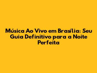 Música Ao Vivo Em Brasília: Guia Completo E Dicas Imperdíveis