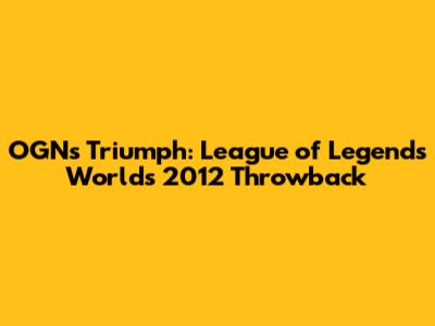 OGN's Triumph: League Of Legends Worlds 2012 Throwback