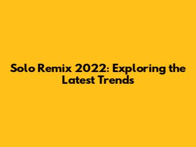 Solo Remix 2022: Exploring The Latest Trends