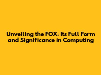 Unveiling The FOX: Its Full Form And Significance In Computing